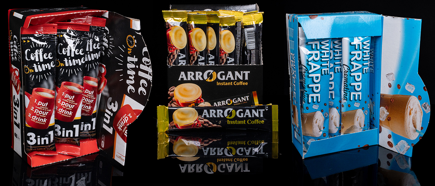 Packfactory.bg е динамично развиваща се компания в сферата на пакетиране на малограмажни порционни опаковки с различни форми и грамажи: Бяла захар, кафява тръстикова захар, BIO кафява захар, инстантно кафе и др. В днешно време производителите на разтворимо кафе непрекъснато подобряват аромата на разтворимото кафе, за да се доближи до този на прясно приготвено кафе. Освен това, производителите на разтворимо кафе предлагат на пазара нови вкусове, като мока, зелено зърно и др., в опит да увеличат продажбите. Освен това, те разработват разнообразни опаковки, за да улеснят продажбата и употребата на разтворимо кафе. Сред тях се разработват и пакети за еднократна употреба, които са изключително удобни за носене и консумация.